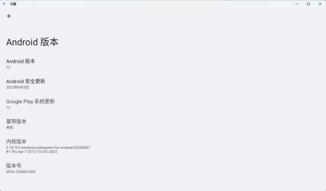 5 月 20 日,微软已宣布更新Android(WSA)的 Windows 子系统(WSA) 。版本号已改为2204.400.底部的Android版本也从Android 11升级为Android 12L。这也是目前Android操作系统的最新稳定版本。