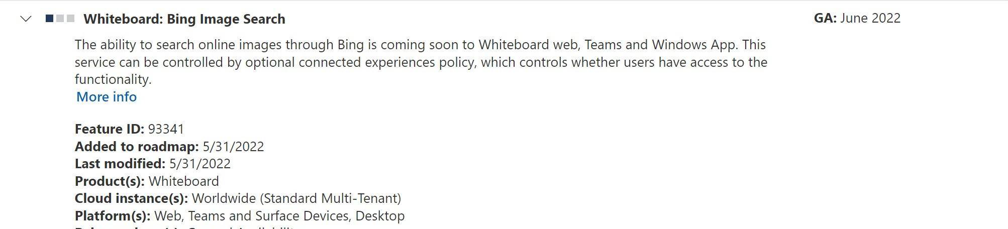 根据Microsoft 365路线图网页的资料,微软正在研究将 Bing Image Search 与 Whiteboard 结合起来,用于表面设备、网页、桌面和团队。这将允许用户在上面的白板客户端内通过Bing在线搜索图像。