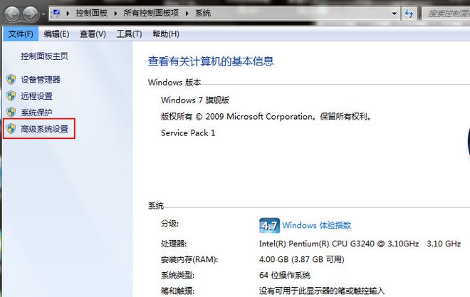1.打开右键的菜单,选择计算机上的属性,然后按下面所示的高级系统设置: