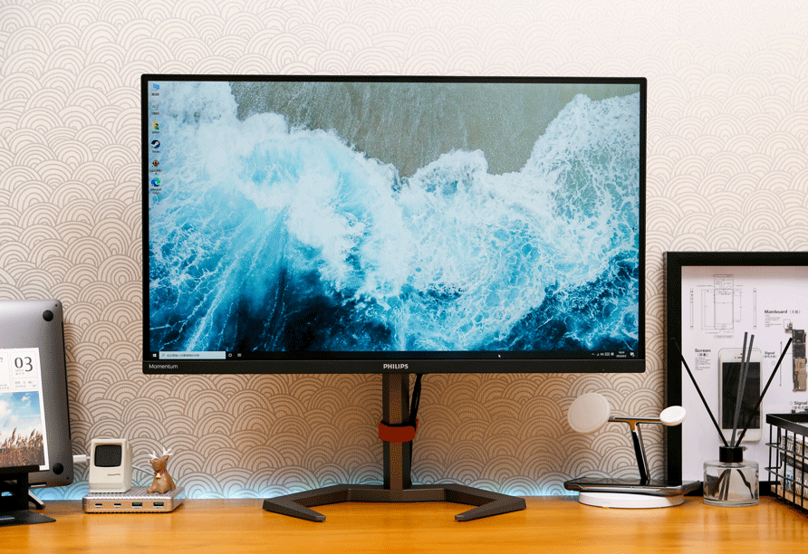为参考分享一波屏幕图,必须说,菲利普斯27M1N5500Z的两千元的价格,比赛显示器本身的颜色质量很好,即使你在办公室使用白天作为生产力工具时,这种收敛的外观,晚上和同事一起玩游戏也是个好选择。
