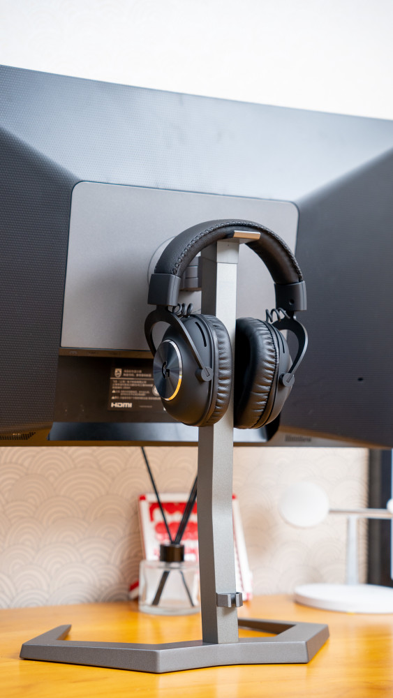 与耳罩连接起来,耳机可以每天在显示器后面收集。