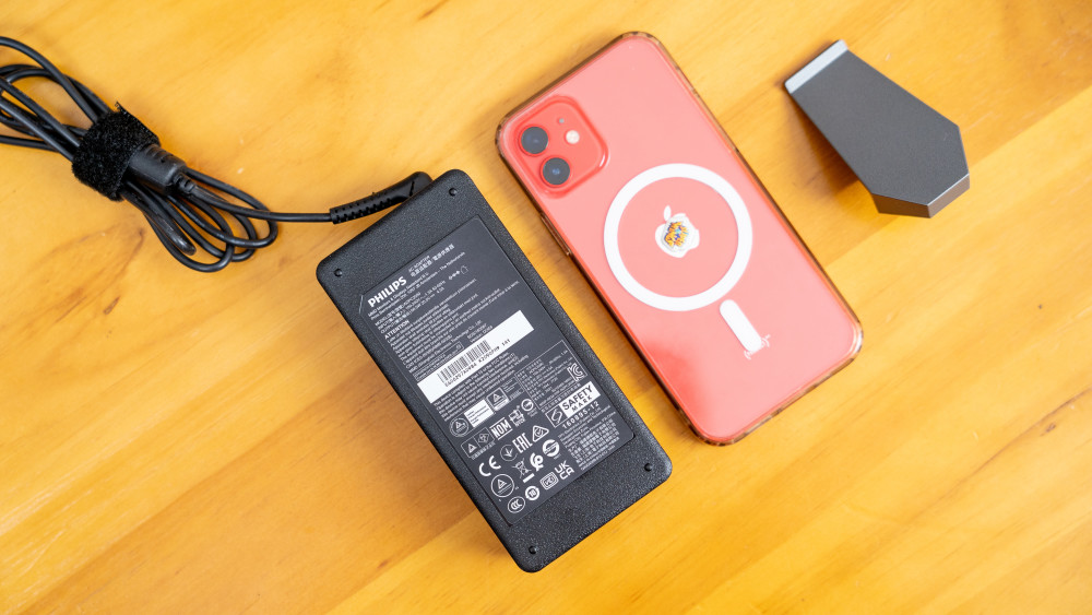 与iPhone12相比的外部电源适配器的大小可以参考,虽然这种外部电源适配器的设计使得玩家更难以合理化线路,而且让菲利普斯27M1N5500Z显示器看起来更轻,对有问题的未来适配器的更换和维护也将更加方便。