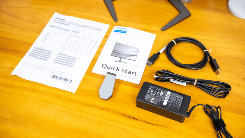 对于附件,菲利普斯27M1N5500Z附有工厂颜色校正手册、使用手册、耳机插座、DP线、外部电源适配器。