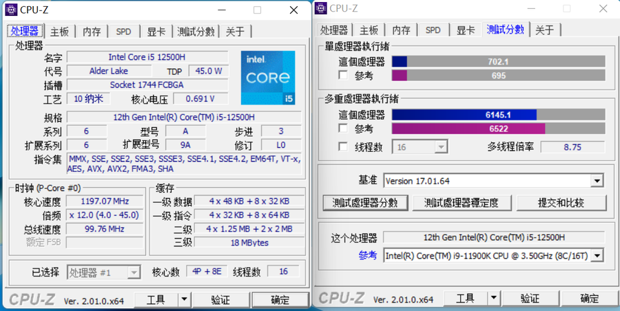 在GPU-Z性能方面,i5-12500H的性能几乎与第十一代最先进的i9-11900K的性能相同,无论是单核还是多核。