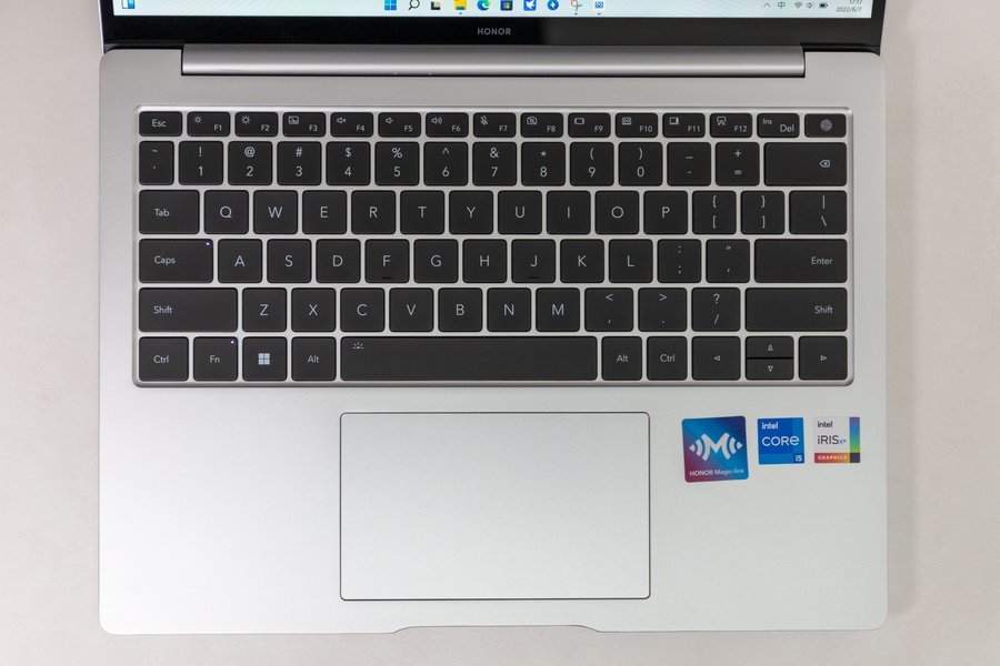 MagicBook 14键盘几乎与去年的MagicBook V14,19.05mm标准键距键盘1.5mm键键盘,键盘微变形设计,键盘手感在过去取得了重大进展。