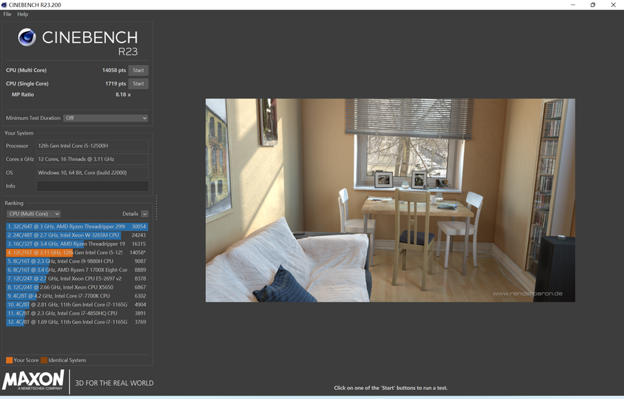 PCMARK 10的基准测试为6156,OFFIEC家族桶为12137,适用于大多数办公室场景。
