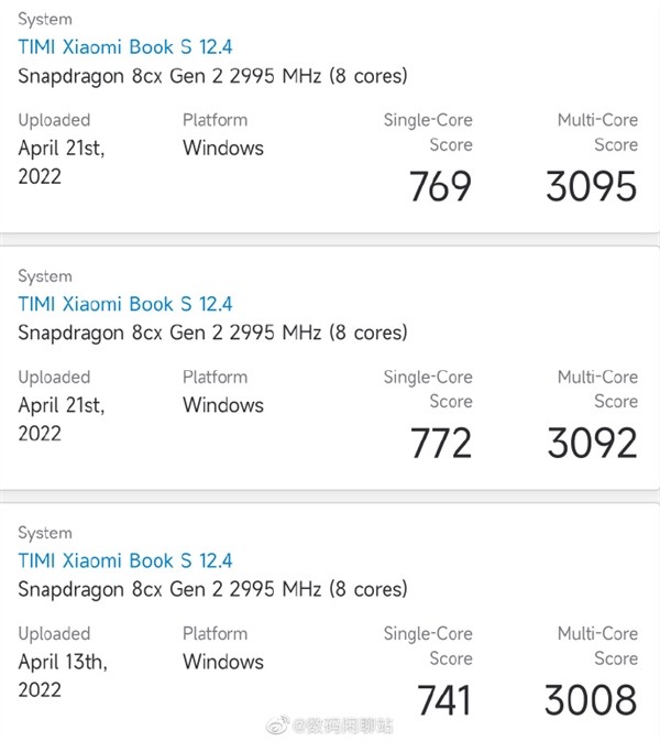 小米首款二合一电脑来了:Xiaomi Book S跑分曝光