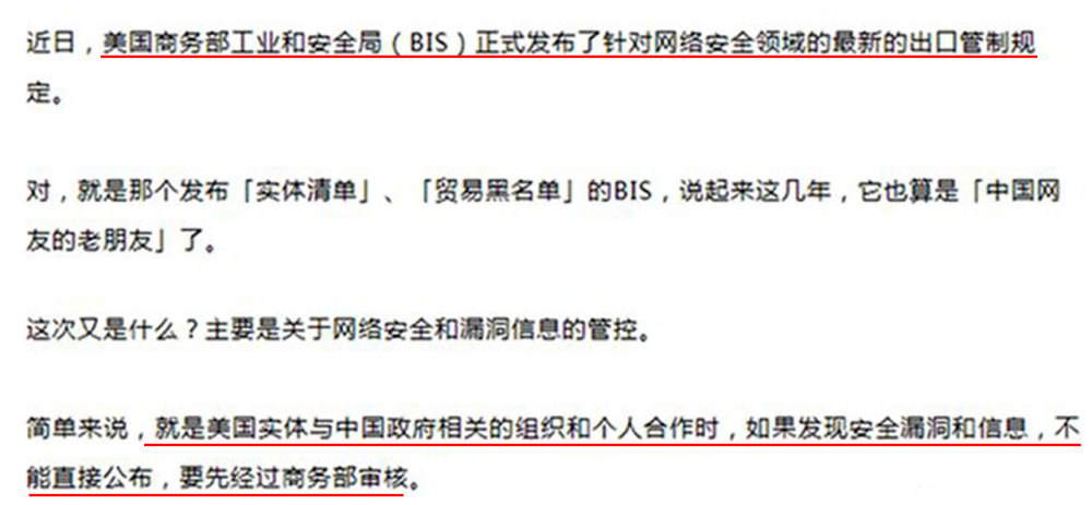根据著名博客《新情报》的报道,美国将发布新的监管措施,规范网络安全领域的最新出口。 具体而言,当美国实体与中国合作时,系统或软件中的安全漏洞、安全事件等无法直接披露。