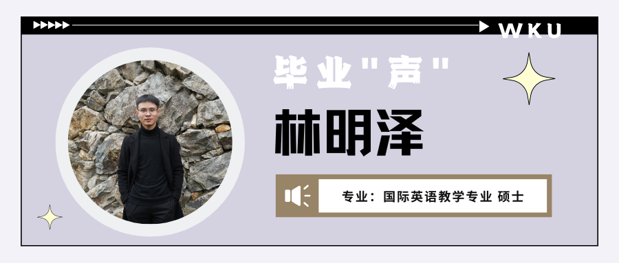 WKU started the master's degree program in 2020 and has its first class of master’s graduates this year. Lin Mingze is one of them. Before he enrolled in WKU’s Instruction and Curriculum (M.A.) program, he worked as an IELTS teaching assistant. In his view, two-year study at WKU has not only enabled him to learn and reflect but also brought him into the realm of “education” and turned him into an “educator”. Currently, he succeeded in becoming an English teacher at a publicelementary school.