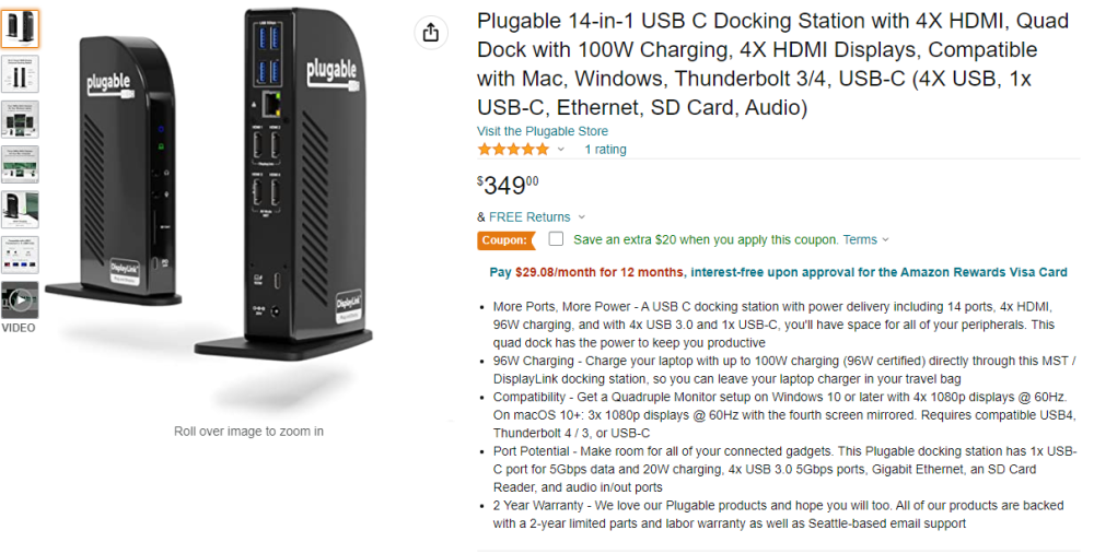 Plugable扩展坞允许 M1/M2 Mac 连接三个高清显示器