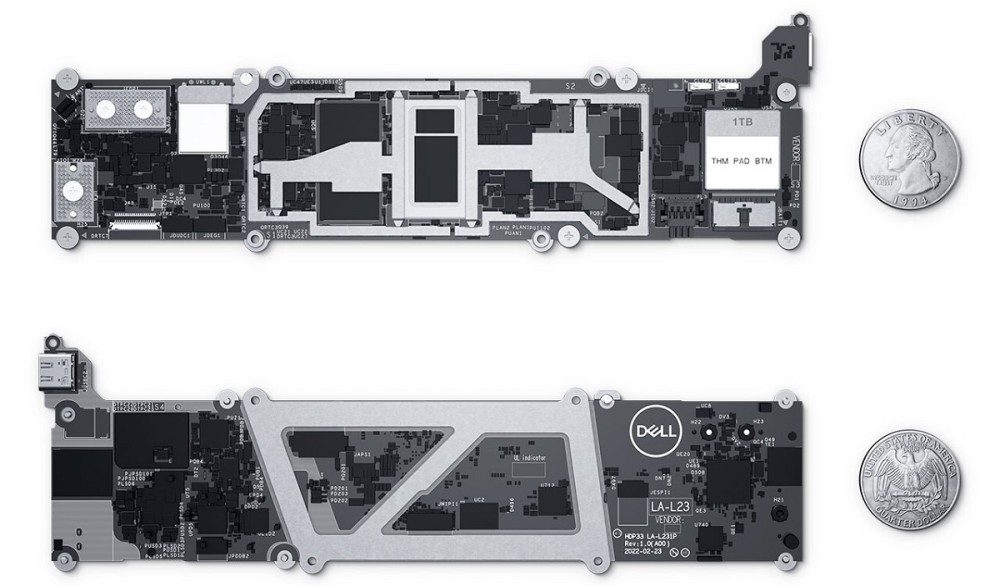 此外,戴尔也重新设计了内部结构,据说它使用了戴尔最小的主板,它也是第一个使用LPDDR5层重叠内存的设备,SSD的尺寸只有11.4×13毫米,采用单扇散热系统.