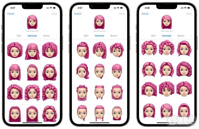 在iOS 16的预览版本中,iOS 16带来了新的Memoji表情和功能改进,增加了6个新的Memoji表情符号,以及17个新的发型、帽子、鼻子等。