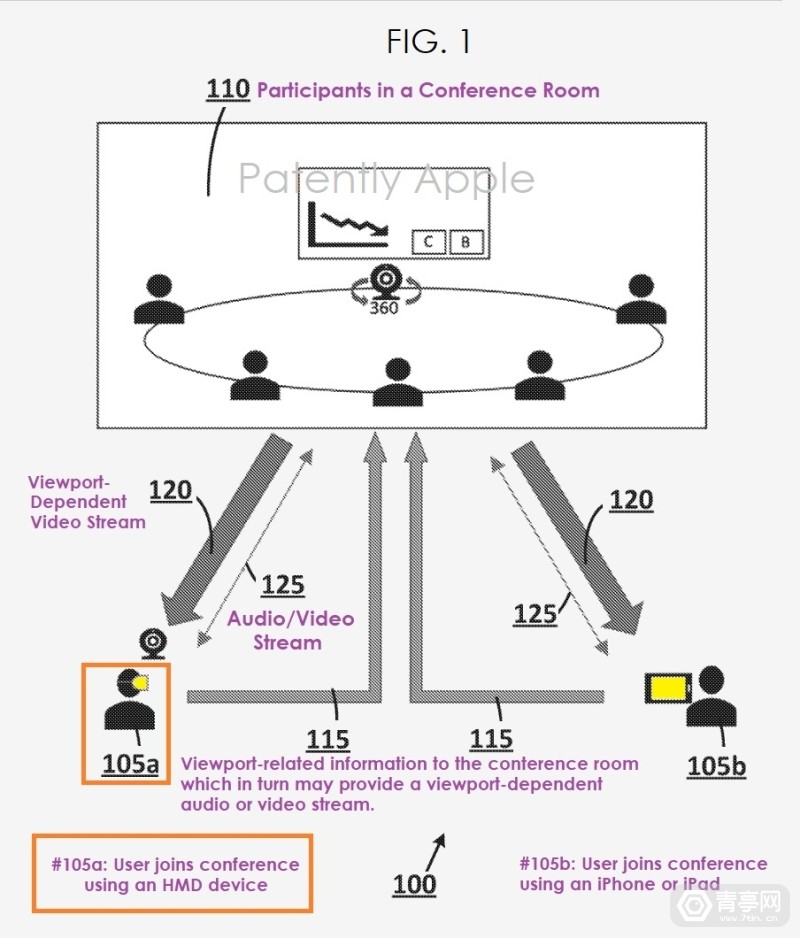 USPTO公开了与AR/VR有关的苹果专利(专利号US20220174108),显示了具有临界敏感性和浸透敏感性的远程会议系统.其特点是采用360度全屏幕视频格式,允许手机、AR/VR耳机客户端同时参与。