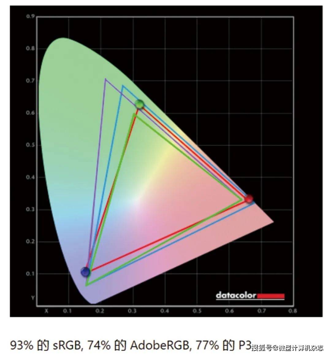 ?AYANEO NEXT Pro的sRGB、Adobe RGB、DCI-P3和颜色范围覆盖率分别达到93%、74%和77%。