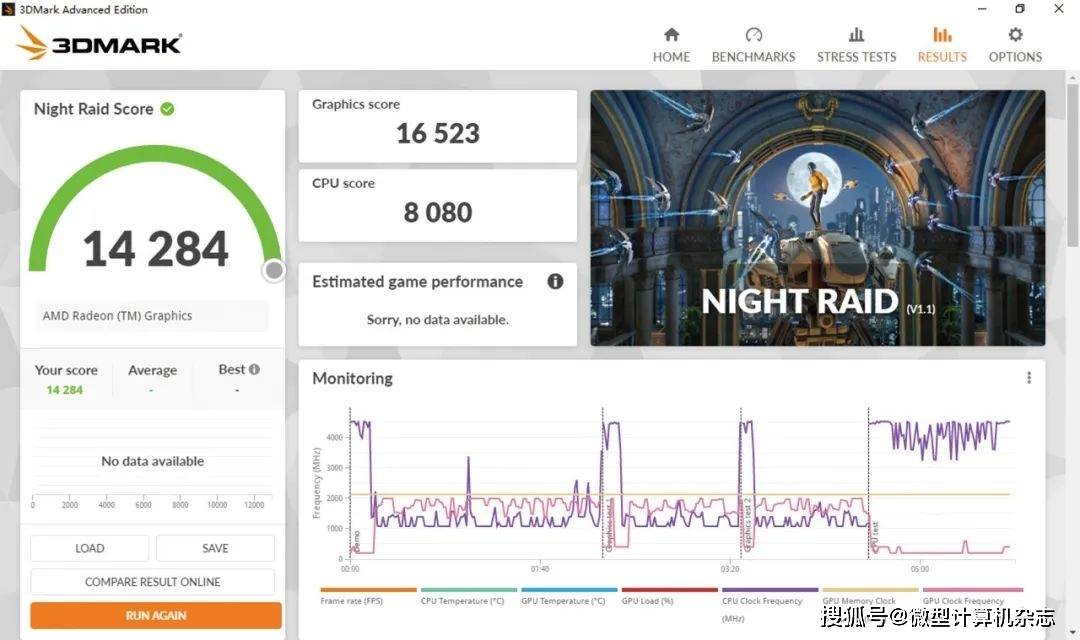 ?AYANEO NEXT Pro在3DMARK的夜行赛中获得14284分。