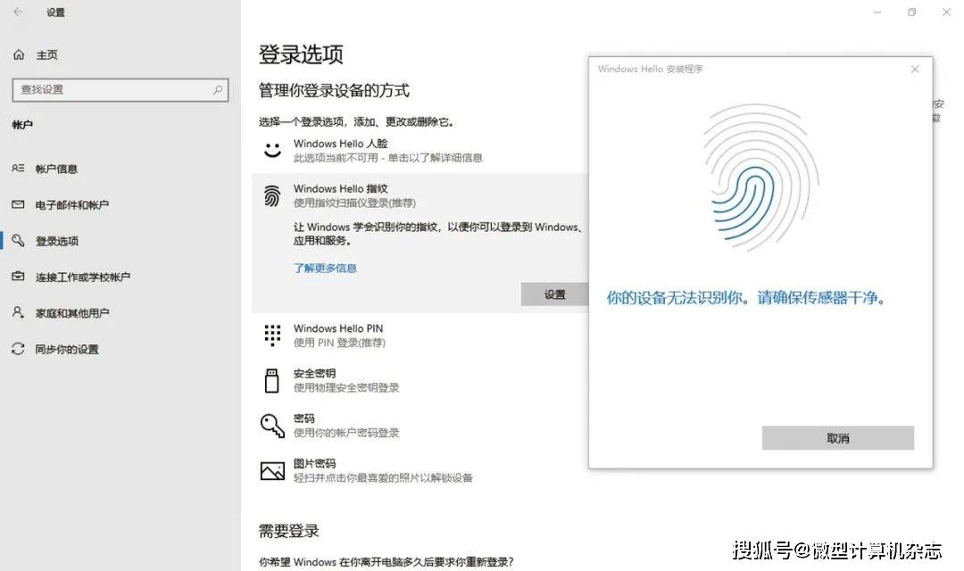 ?您可以在Windows下设置自己的指纹 Hello指纹在系统设置-帐户-登录选项下,这允许在机器开关时快速解锁。