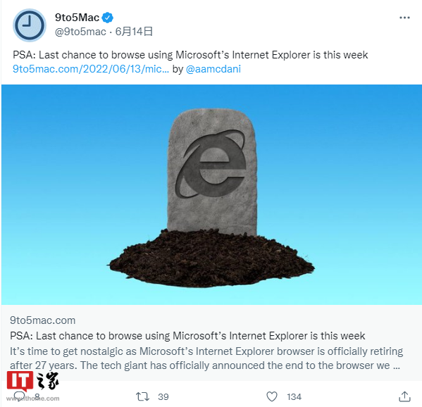 - 2022-06-15 微软IE浏览器将于明日正式谢幕