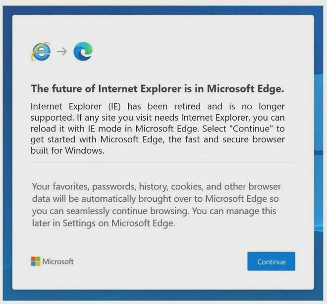 "最终,作为未来Windows更新的一部分,Internet Explorer将永久禁用,然后,他们的设备上的Internet Explorer图标将被删除。-微软EdgeEnterprises总经理肖恩·林德赛