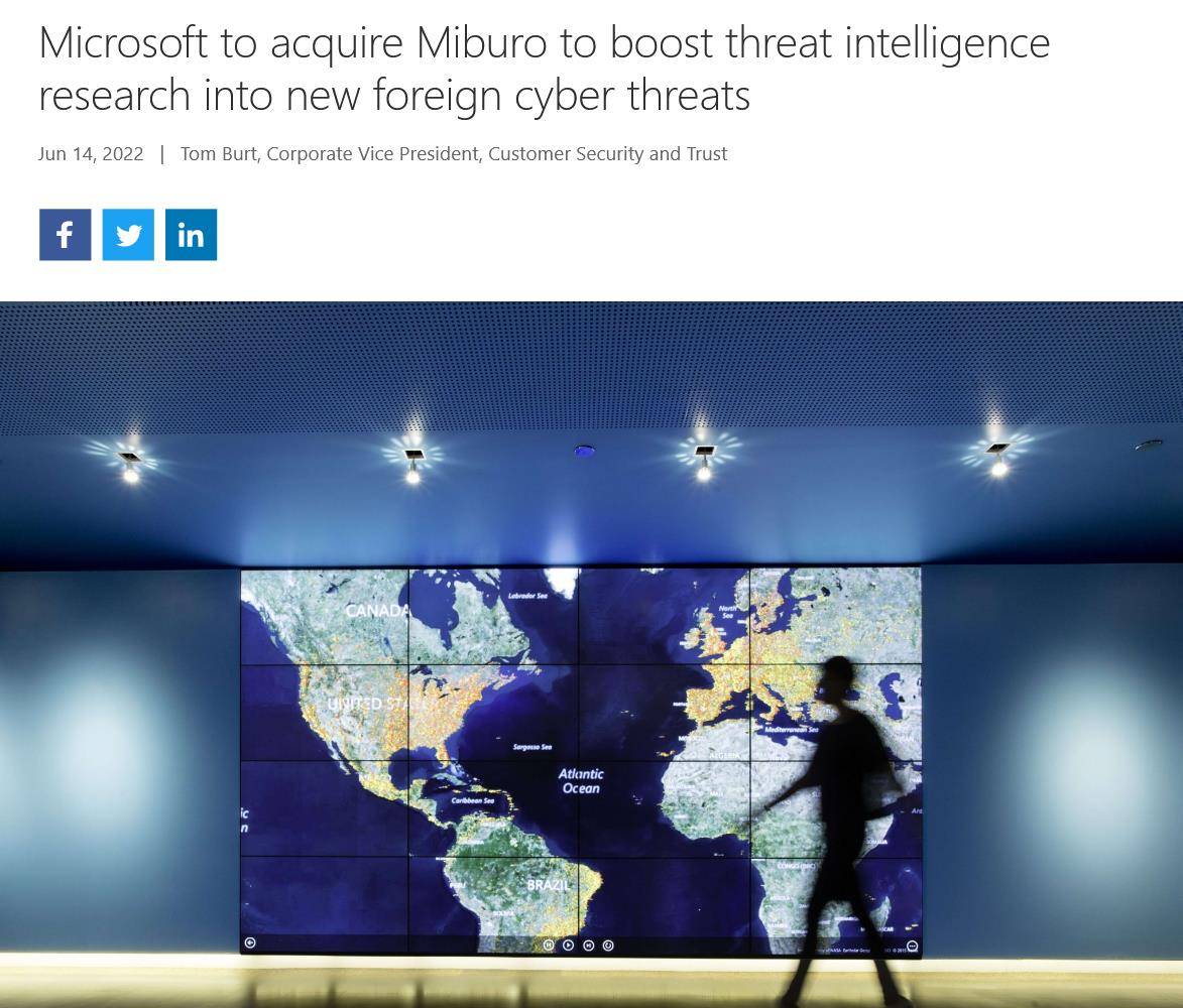 原创 微软宣布收购Milburo以加强国外威胁检测和响应解决能力