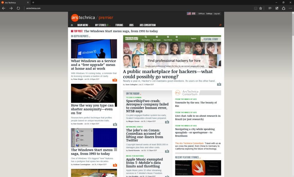 2015年,微软和Windows10一起推出Edge,再次努力使埃奇重新获得市场份额.边缘浏览器保留蓝色E图标,但放弃Internet Explorer和其他一切,它包含了一个新的触摸屏幕界面和一个名为EdgeHTML的新浏览器引擎。但这个名字并没有解决微软的基本问题:它的浏览器功能落后于竞争对手,它也缺乏与当时成熟的第三方浏览器扩展的兼容性。埃奇也有一些令人困惑的后果,因为它只能在Windows10系统上运行,它忽略了Windows 7和8(更不用说macOS或Linux等其他平台)。