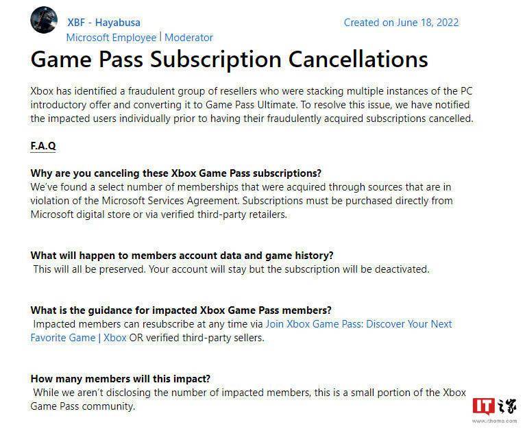 微软官方回应 XGP 羊毛党被退订:发现欺诈性经销商,账户将保留