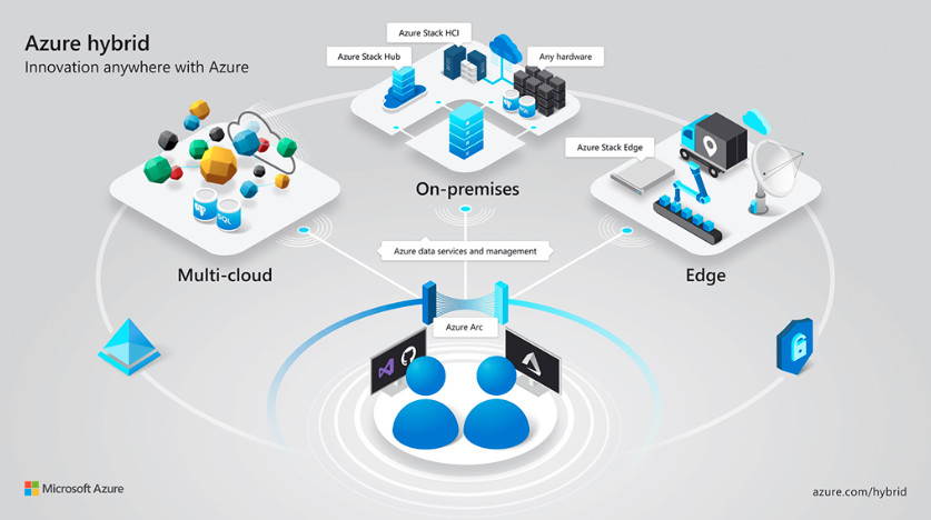 2019年底,Microsoft发布了Azure Arc混合云技术预览。Azure Arc的目标是在任何环境中应用创新,同时提供完善的开发 、 部署和持续业务管理经验.此前,Microsoft Azure Stack HCI已部署一致的云模式,用于企业本地和边缘环境,Azure DevOps为任何环境和任何云提供一致的 DevOps业务开发,微软还将将云层安全扩展到所有基础设施,基于Azure Cognitive Services的人工智能模型也可以在任何地方运行。Azure Arc是混合云的另一个新高度。