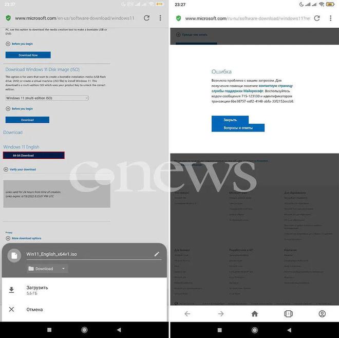 2022年6月19日,一些俄罗斯媒体报道,Windows 10和Windows 11安装程序在俄罗斯不能正常下载。