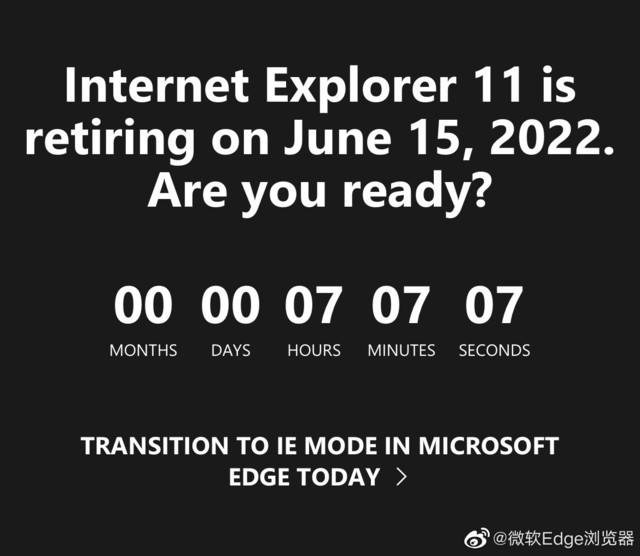 6月15日9点,微软完全关闭了IE浏览器,这意味着6月15日是微软IE浏览器的最后一天。