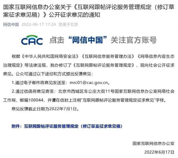 国家邮政局将审查评论的内容。17日,国家邮政局公开要求就《互联网及邮政评论服务管理条例》提出意见。其中提到,建立健全的资料管理系统,例如后续意见、审计管理、实时检查、报告和接受,注释内容须予预审及后审及时查明和处理非法和不良信息,并向网信部门报告。另外,严重不信任的用户应该被列入黑名单,停止向黑名单上的用户提供服务,亦禁止透过重新登记及其他方式使用邮件评论服务开帐。