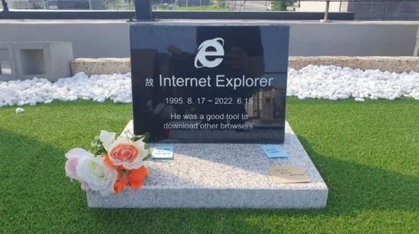 其中最著名的是韩国人,张成英的杰作。他坐在朋友咖啡店的屋顶上,为IE立了个墓碑,“它是一个下载其他浏览器的好工具,”死讯中写道。因此,一个重要的墓石实际上只占着屋顶的一小部分,生产费用一个月,430,00 won(超过2,200 RMB),这些细节给整个场景增添了更多的喜剧.