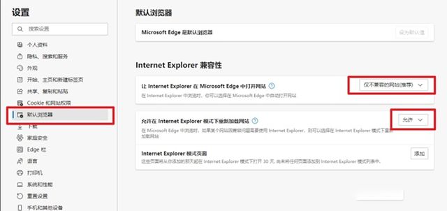 然后,在“允许在Internet Explorer模式下重载网站”选项中,选择“允许”。