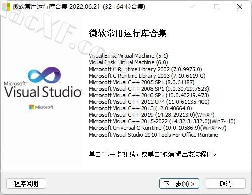Visual C++ 库组件包(Microsoft common library bundle)的这一版本由 @Dreamcast 的国内包装支持者包装,并集成了 Visual C++ 库组件包的所有版本,提供了一个图形安装接口,并可随意更新VC++ 版本。