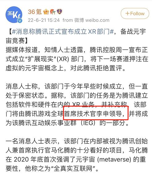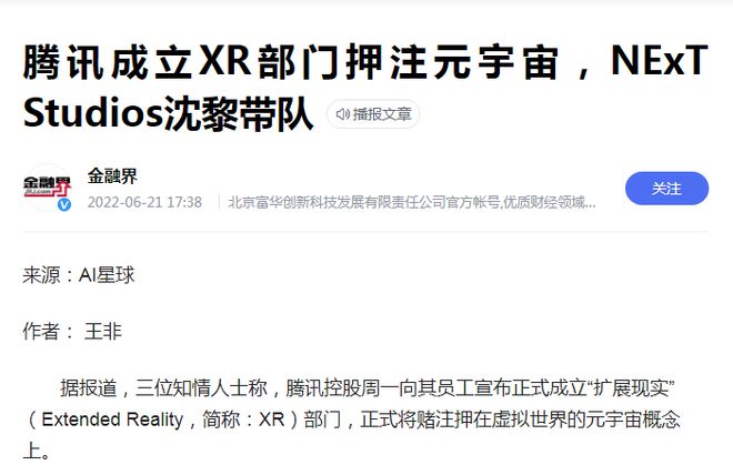 今天, 新浪、金融街和其他网站再次证实了这个消息, 祥李队Xr部门压制了元空间.