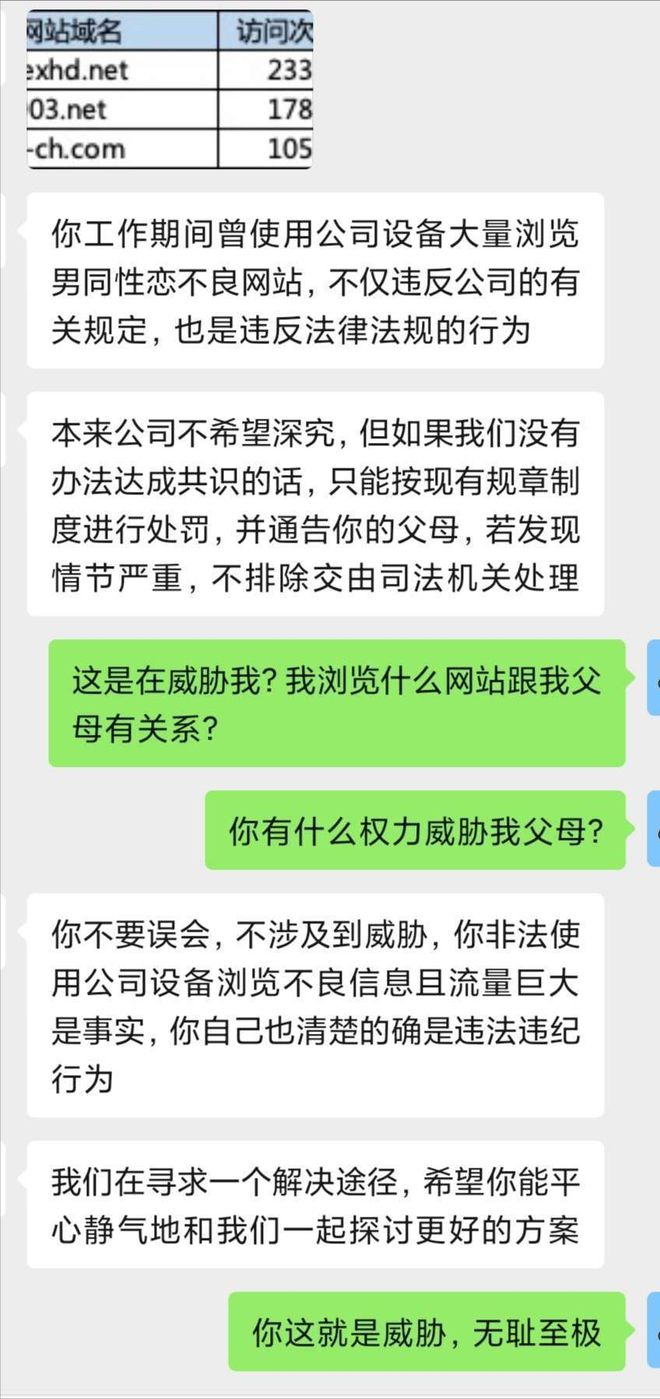 据网络人士透露,该公司最近被解雇,并依法索赔N+1赔偿金。 因此,人事部门威胁要查阅员工所访问的网站的记录,并告知员工的父母其隐私。