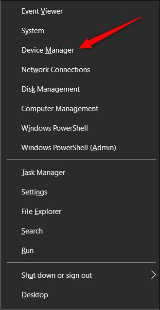按Windows+X打开设备管理器,然后单击Power Users菜单上的设备管理器选项。