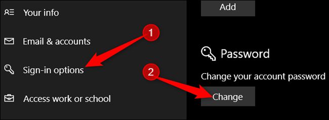 从左边的设置列表中,选择登录选项,然后右边的密码节下,单击更改按钮。