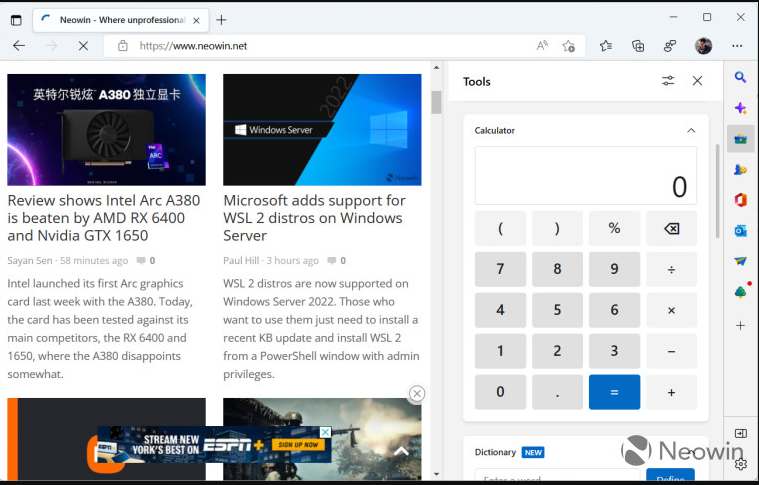 微软 Edge 浏览器将支持网络测速,内置计算器和单位转换工具