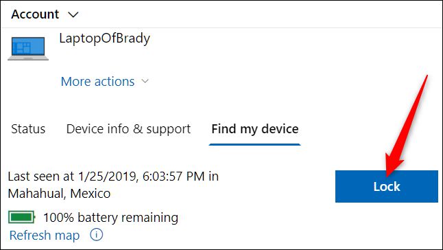 如果您的设备的位置显示在您不希望的位置,单击锁定开始锁定您的设备。