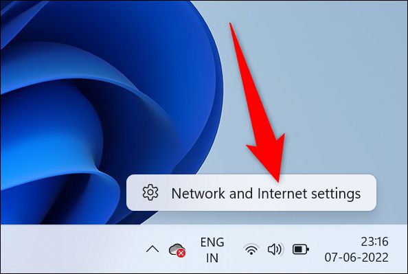 若要切换到Windows11电脑上的个人配置文件,首先右击PC系统盘中的Wi-Fi图标(屏幕底部的栏)并选择网络和互联网设置。