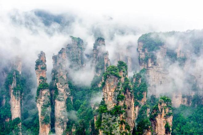 在张家杰国家森林公园里,有300个石峰布置,奇异的沙石峰森林景观和壮观的城堡景观,似乎是山间的天空,因此具有"中国山水画原版"的荣誉。