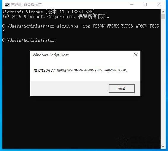 此时,Windows脚本主显示产品键已成功安装,然后我们重新启动计算机。