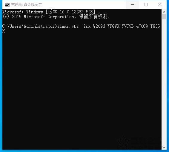 在我们的管理界面: 在命令提示下,输入 slmgr.vbs -ipk