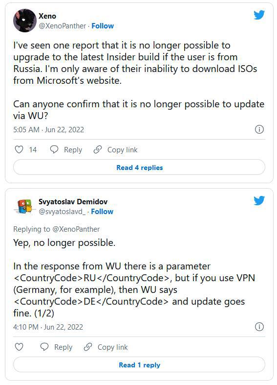 - 2022-06-24 俄罗斯用户已无法下载和升级 Win