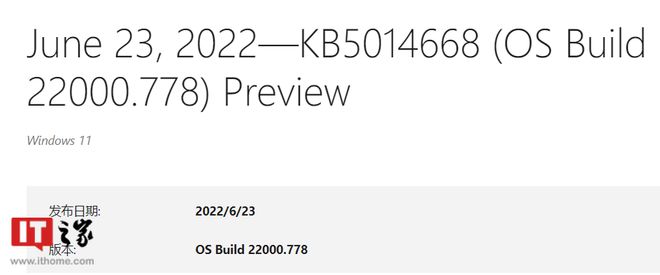 - 2022-06-24 Win11 Build 22000.778(KB5014668)发布