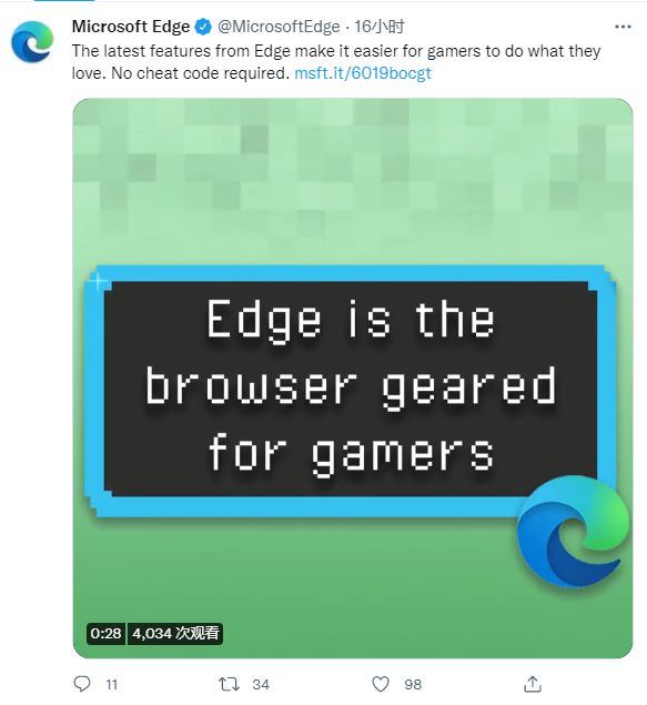 此前,微软官员称Edge是“游戏玩家最适合的浏览器”,并向公众披露了一些新功能。
