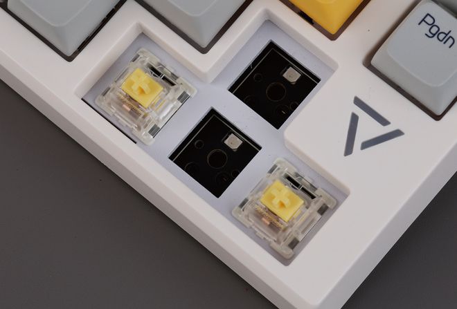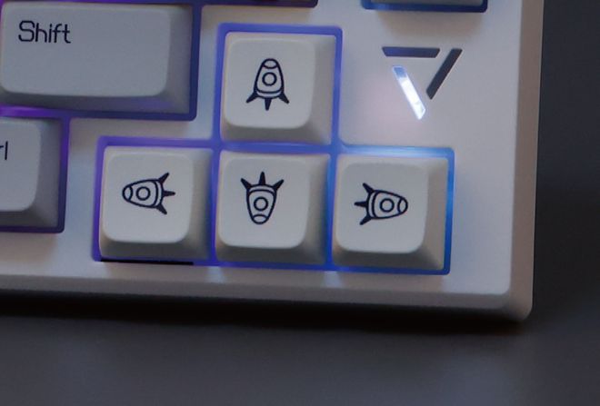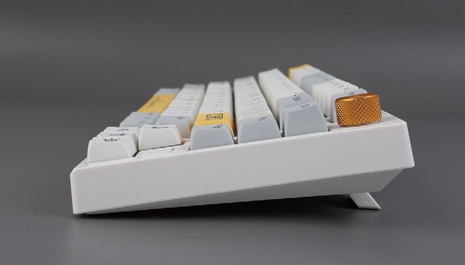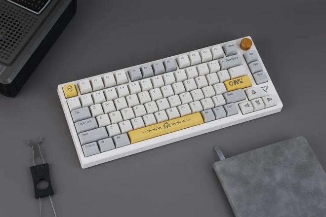 AK816三模热插式机械键盘最大的特点之一是它提供了一个特殊的主题PBT键盘,它已经加热。我们认为宇宙奇迹是由三个不同的颜色组成的:灰色、黄色和白色。其字符镌刻细腻,同时,ESC键、空间、返回键和方向键设计出独特的图形,使它看起来充满活力。