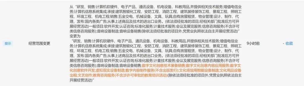 六月二十一日新闻:有限公司(苏州)是有限公司(苏州)子公司,其业务范围由数字文化创意技术设备销售、数字文化创意软件开发、 虚拟现实设备制造,数字内容制作服务, 制造文化场所智能设备等.