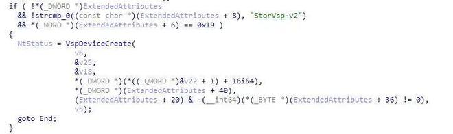显示是否存在一个名为"StorVsp-v2"的扩展属性和值字段的长度为0x19字节。 因此,驱动程序是StorVsp.sys
