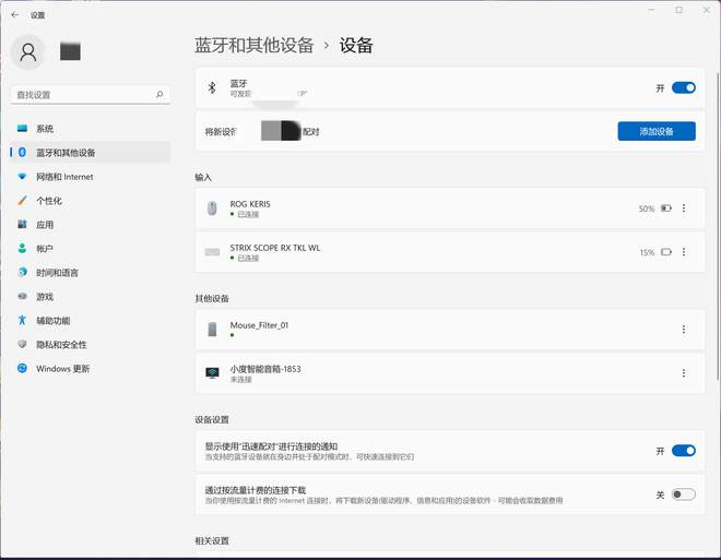 最后在win11上显示ROG外部的蓝色牙断显示交叉点后,实际上有一个电源显示器!
