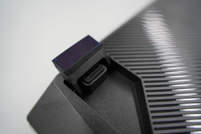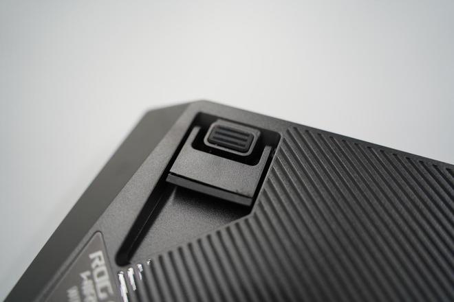 表面由铝合金制成,经过抛光处理,并不容易染油。 前面有斜坡设计,左边印有ROG LOGO,我以前知道它叫做"迷人的眼睛",我看了整个名字,我不知道ROG的真正意思。